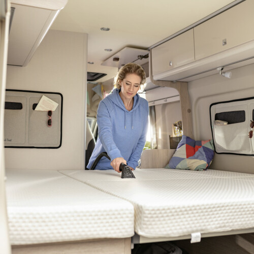 Čištění do hloubky vláken s maximální volností pohybu: Tepovač SE 3-18 Compact čistí textilní povrchy důkladně a beze zbytků. Díky kompaktnímu designu je zařízení nejen praktické, ale lze jej také používat, když není poblíž žádná elektrická zásuvka, a to díky 18V baterii Kärcher Battery Power (není součástí dodávky). Díky tomu lze interiér vozidla vyčistit za pouhých 12 až 24 minut. V mžiku tak odstraníte nečistoty z autosedaček, koberečků a zavazadlového prostoru, stejně jako zahradního nábytku a čalounění – stejně účinně jako s našimi síťovými čističi s rozprašovačem. Dlouhá a ohebná sací hadice s vnitřní hadicí na čisticí prostředek také zaručuje velké pohodlí a flexibilitu i na těžko přístupných místech. I po vyčištění vás tepovač zaujme svou funkcí hygienického proplachu, který odstraňuje nečistoty z přístroje i hadice, a zabraňuje tak vzniku bakterií a zápachu.