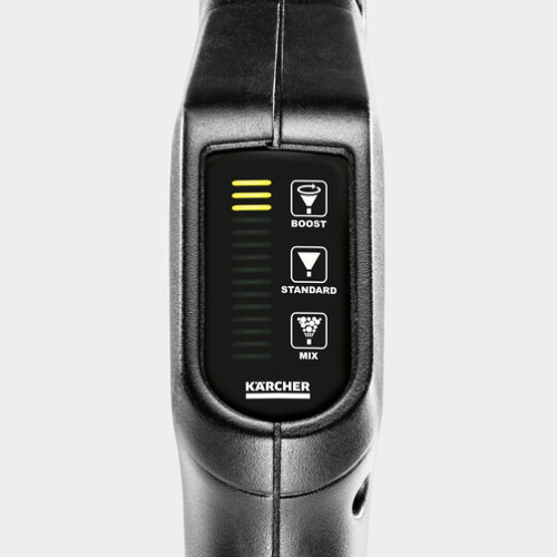 Různé pracovní nástavce umožňují 3 tlakové stupně pro optimální čištění různých povrchů. Displej na vysokotlaké pistoli umožňuje jednoduchou kontrolu zvoleného stupně tlaku.