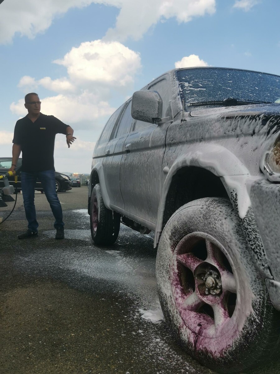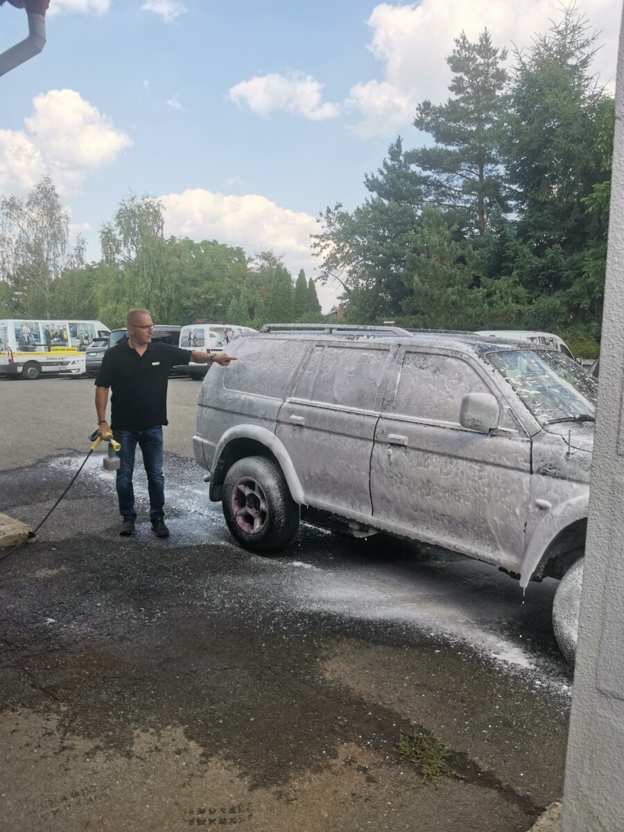 Na školení novinek jsme testovali vysokotlaký čistič bez ohřevu HD 13/18-4 SXA Plus s pěnovacím nástavcem a aktivní pěnou Kärcher.