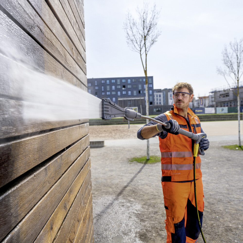 | O 50% vyšší úspora vody* | Úspora vody.. * Na základě schopnosti vyčistit o 50 % větší plochu než standardní plochá tryska Kärcher se stejným množstvím energie a vody. |