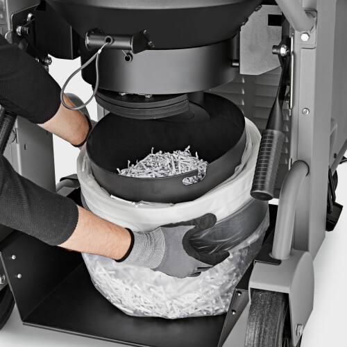 | Komfortní mechanika odnímání nádoby | Jednoduché a časově úsporné vyndávání nádoby přímo za držadlo.. Praktické držadlo nádoby slouží pro uchopění při přepravě na místo vyprázdnění.. Velká průmyslová kola umožňují maximální mobilitu i na nerovné podlaze a při těžké náplni. |