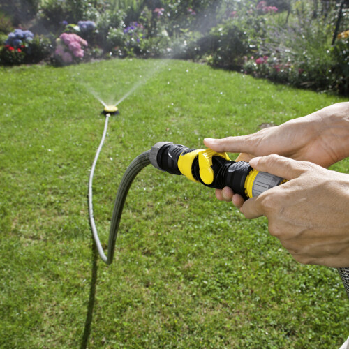 Intaktní kohoutové přípojky, hadicové spojky a hadice jsou základem pro efektivní zavlažování.Proto firma Kärcher nabízí kompletní řadu příslušenství na propojení, odpojení a opravu zavlažovacích systémů. Příkladem může být regulační ventil Kärcher – ideální řešení pro regulaci průtoku vody od 0 do max. Ventil vás přesvědčí svým ergonomickým designem a zajistí snadnou manipulaci. Regulační ventil může sloužit buď jako spojka mezi hadicí a skrápěčem nebo s pomocí přiložené dvoucestné spojky pro spojení dvou hadic. Regulační ventil Kärcher je kompatibilní se všemi běžně dostupnými západkovými systémy a všemi běžnými průměry hadic.