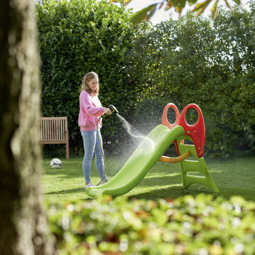 Rotující paprsek ve srovnání s klasickými zahradními postřikovači snižuje dobu čištění až o 50%. Doba chodu až jedné hodiny pro rotační trysku s dodanými bateriemi AA.