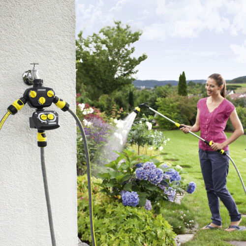 K cílenému zavlažování dle potřeby: nový zavlažovací automat Kärcher WT 4 je velmi snadné naprogramovat. Díky odnímatelnému obslužnému dílu, velkým regulátorům a přehledné spínací ploše lze provést programování snadno a bez námahy. Maximání doba zavlažování je 120 minut. Každý proces zavlažování začíná a končí přesně a automaticky v naprogramovanou dobu. Včetně přípojky ke kohoutu a předsazeného filtru, nezbytná 9voltová alkalická baterie není součástí dodávky. Vaše zavlažování se zavlažovacím automatem Kärcher začíná a končí automaticky v předem nastavitelnou dobu. Voda tedy proudí jen tehdy, když je to opravdu nutné, což uspoří peníze a ochrání životní prostředí. Zavlažovací automaty Kärcher jsou kompatibilní se všemi známými zacvakávacími systémy.