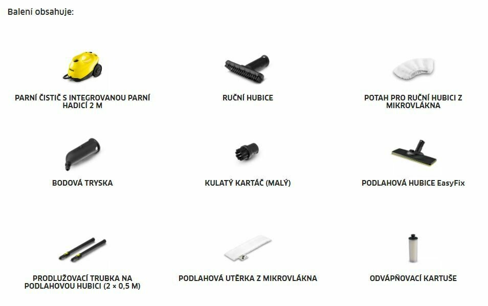 Důkladné čištění parním čističem Kärcher odstraní 99,999 % koronavirů* a 99,99 % všech běžných domácích bakterií** z běžných pevných povrchů v domácnosti. Parní čistič SC 3 EasyFix nemá slitování s žádnými nečistotami v domácnosti, ani těmi úpornými. SC 3 je ideální volba, pokud hledáte pomocníka, který se hodí i na generální úklid, a navíc nabízí snadné ovládání i údržbu. Tlaku páry 3,5 barů neuniknou ani odolné skvrny, na ohřev nebudete čekat více než 30 vteřin a vodu lze doplnit kdykoliv během úklidu, a to bez přerušení práce, díky integrovanému trychtýři. Už žádné zdlouhavé čekání, pouze extrémně účinný úklid hotový během chviličky. Kuchyňskou mastnotu snadno odstraníte účinnými doplňky jako je ruční hubice, bodová tryska a kulatý kartáček. Ty si poradí i s drobnými skulinami, které beze zbytku vyčistí. Na ušpiněnou podlahu už není třeba brát kartáč. Unikátní systém EasyFix si poradí i se zašlými spárami. Šetří tak nejen vaši námahu, ale i záda. Díky upínání utěrky na suchý zip a nášlapnému držáku se stejně snadno nasazuje, jako snímá. Další praktické detaily na stroji zahrnují uložení příslušenství a parkovací polohu pro podlahovou hubici. Dlouhověkost přístroje pak zaručuje odvápňovací systém. Nemusíte se tak téměř o nic starat a jen se těšit z hygienické domácnosti.
