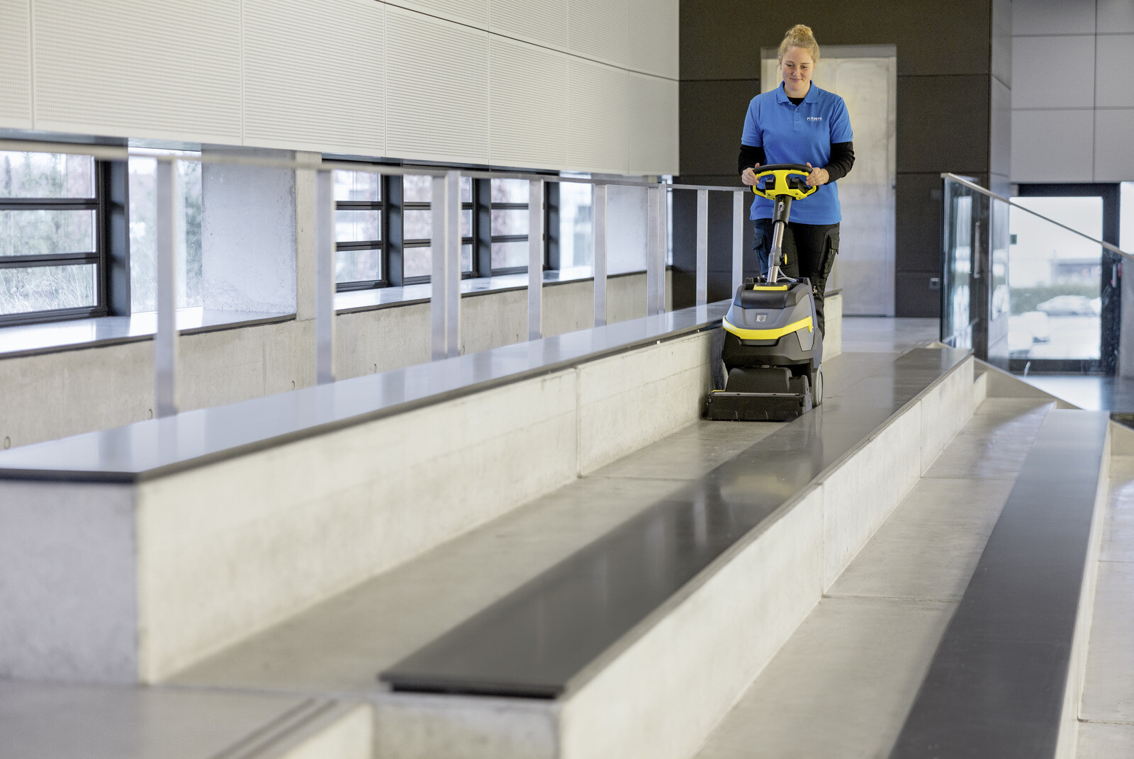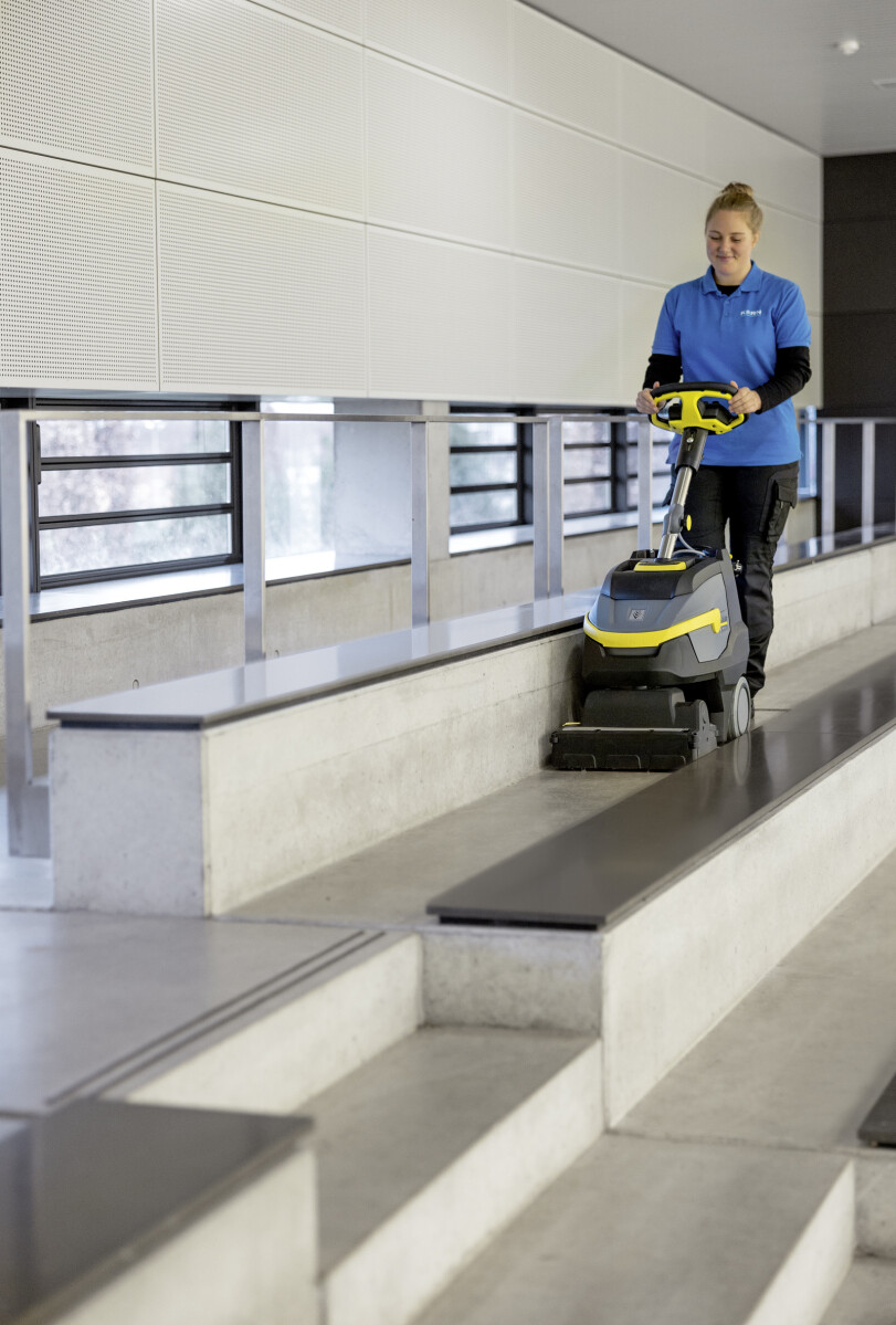 Limitovaná edice černého bateriového podlahového mycího stroje BR 35/12 C Bp Pack Go!Further, vyrobeného z 38 % recyklovaného plastu¹⁾ a vybaveného exkluzivním příslušenstvím, je ideálním řešením pro efektivní čištění malých a zařízených prostor. Čistí dopředu i dozadu a díky nízké hmotnosti se snadno přepravuje a je vhodný pro použití na schodech. Otočná válcová kartáčová hlava s technologií KART (Kärcher Advanced Response Technology) umožňuje práci v těsných zatáčkách, čímž zajišťuje maximální manévrovatelnost a agilitu. Výkonná a dlouhotrvající lithium-iontová baterie umožňuje dlouhou dobu provozu, je bezúdržbová, rychle se dobíjí a má až třikrát delší životnost než běžné olověné baterie. Pro další zvýšení účinnosti lze stisknutím tlačítka aktivovat režim eco!efficiency. Ten snižuje spotřebu energie, prodlužuje dobu provozu baterie a snižuje hlučnost provozu přibližně o 40 procent, což umožňuje práci i v hlukově citlivých prostorách.