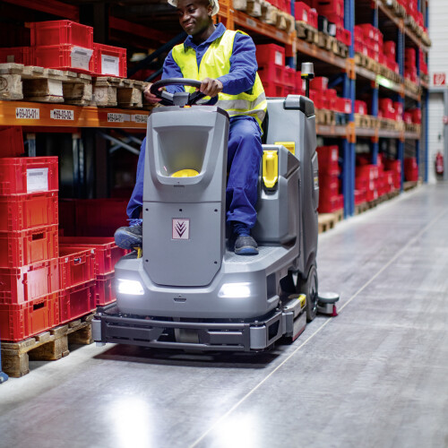 Díky kapacitě nádrže 110 litrů na čerstvou vodu a špinavou vodu a díky válcovým kartáčům s pracovním záběrem 75 centimetrů a integrované zametací jednotce zvládá bateriový mycí stroj B 110 R plošné výkony až do 5100 m² / h. Se standardním bočním mycím kartáčem lze pracovní šířku prodloužit o 10 centimetrů a vyčistit oblasti v blízkosti okrajů. Všechna nastavení se pohodlně zadávají na velkém barevném displeji ve 30 jazycích, barevně označené ovládací prvky usnadňují práci uživateli, výškově nastavitelné sedadlo zajišťuje maximální pohodlí, denní světla zvyšují bezpečnost a funkce Auto-Fill šetří cennou pracovní dobu. Díky inovativnímu systému klíčů KIK, pomocí kterého lze různým uživatelům přiřadit různá práva pro nastavení režimů čištění a dalších funkcí, se účinně předchází chybám v provozu. B 110 R také šetří zdroje díky systému dávkování čisticího prostředku DOSE a dávkování vody v závislosti na rychlosti.