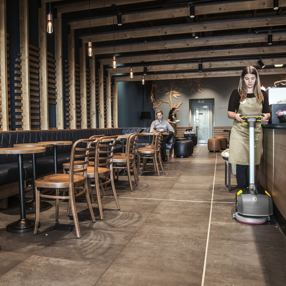 Podlahový mycí stroj Kärcher BD 30/4 Bp Pack je vybaven bateriovým pohonem. To znamená, že vás stále neobtěžuje žádný kabel, o který byste mohli zakopávat. Náš extrémně kompaktní mycí stroj je vhodný na malé plochy až do 300 m². Přírodní nebo umělý kámen, epoxidová pryskyřice, linoleum nebo PVC: výrazně rychlejší a důkladnější čištění než při manuálním úklidu. V případě potřeby odsává přístroj i při jízdě vzad a díky sací liště kolem stroje je spolehlivý i při jiném manévrování. Promyšlený a velmi jednoduchý koncept ovládání s barevně rozlišenými ovládacími prvky se ukazuje i při jednoduché a rychlé výměně výkonné a dobité lithium ionové baterie. Hmotnost stroje jen 20 kg umožňuje i používání také v budovách bez výtahu na různých poschodích.
