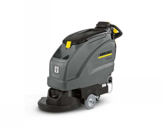 Profesionální, dobře ovladatelný, mobilní a všestranný Kärcher B 40 je ručně vedený podlahový mycí stroj, který lze jednoduše používat v různých oblastech nasazení. Stroj čistí pomocí 1 diskového kartáče o průměru 430 mm. Přítlak kartáče lze nastavit dle druhu čištěného povrchu. Čistící roztok je veden z nádrže na čerstvou vodu 40 l do prostoru kartáče, kde probíhá čištění a sací lišta 850 mm (rovná nebo zahnutá) následně beze zbytku odsaje znečištěnou vodu do nádrže na špinavou vodu 40 l.