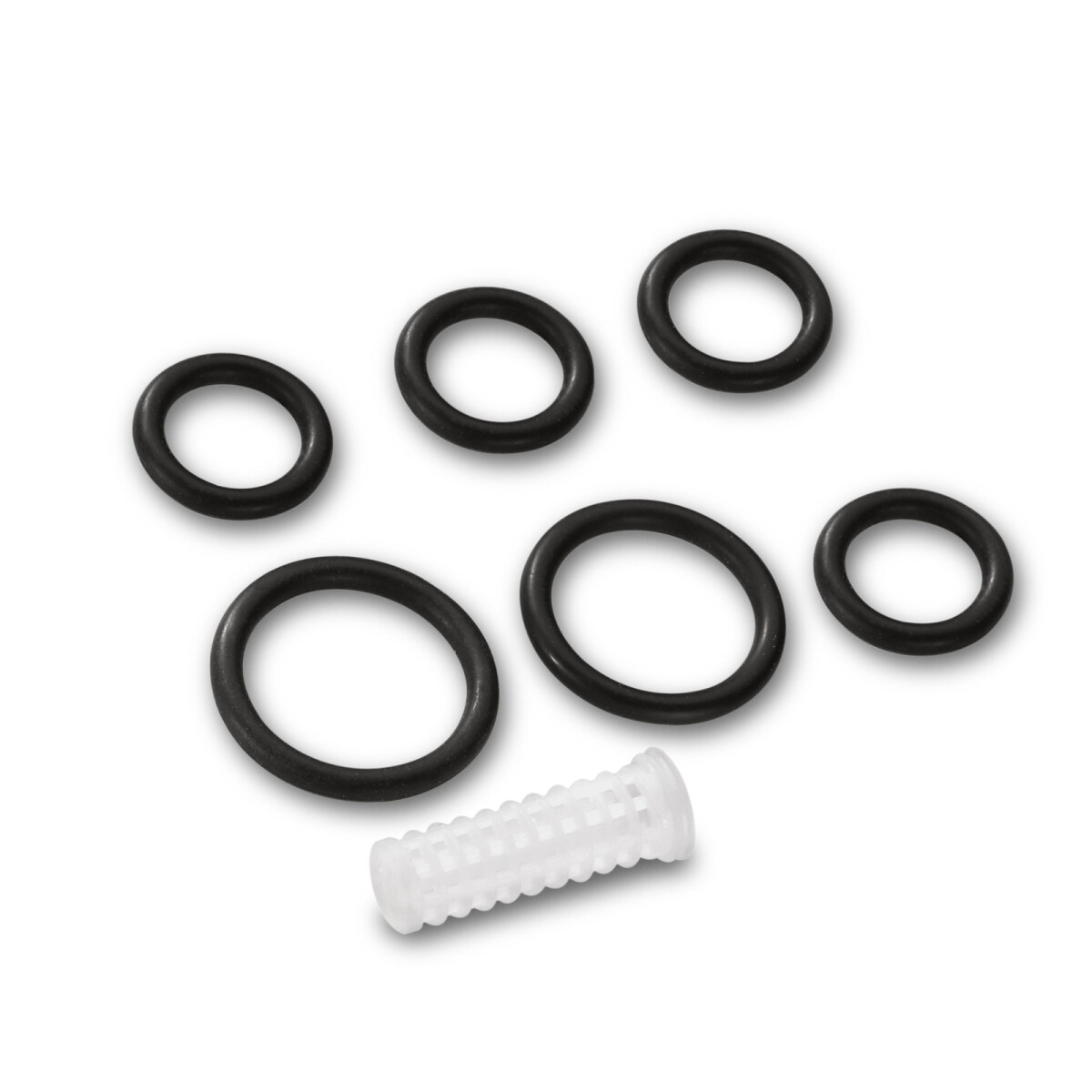 ntaktní kohoutové přípojky, hadicové spojky a hadice jsou fundamentem pro efektivní zavlažování. Proto nabízí Kärcher kompletní řadu příslušenství pro spojování, oddělení a opravení zavlažovacích systémů. Např. sada o-kroužků se 6 těsnicími kroužky (4x 10,8 mm x 2,6 mm, 1x 15,9 mm x 2,6 mm, 1x 17,1 mm x 2,6 mm) a filtrem postřikovače. Těsnicí sada je kompatibilní se třemi nejběžnějšími průměry hadic a všech běžných západkových systémů.