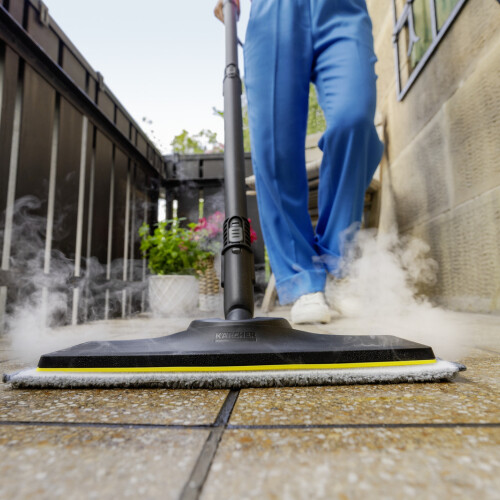 Sada utěrek na čištění podlah Power EasyFix obsahuje dvě vysoce kvalitní utěrky pro důkladné a hygienické čištění parním čističem. Utěrka Ultra Abrasive má vyšší podíl abrazivních vláken pro obzvláště snadné odstranění odolných nečistot. Hadřík Abrasive podporuje odstraňování nečistot abrazivními vlákny a nabízí vynikající zachycení nečistot pomocí dalších měkkých textilních částí, například při vytírání po čištění hadříkem Ultra Abrasive. Díky systému háčků a smyček lze utěrky snadno a rychle připevnit k podlahové hubici parního čističe: jednoduše přitiskněte utěrku na čištění podlahy k podlahové hubici EasyFix a je hotovo. Během práce zůstane utěrka bezpečně na svém místě. Po skončení čištění lze použitou utěrku z podlahové hubice EasyFix sejmout, aniž by došlo ke kontaktu se špínou: jednoduše sešlápněte patku na utěrce a vytáhněte podlahovou hubici nahoru a pryč od ní.