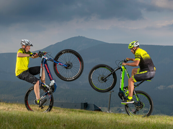 Kromě e-biků nabízíme i cyklistické doplňky a oblečení CRUSSIS – vše ladící do našich barev. V roce 2018 jsme uvedli karbonová a celoodpružená horská elektrokola a jako první v ČR integrovali baterii do rámu. Rok 2019 znamenal velký posun – tváří značky se stal Jaromír Jágr a spolu s ním jsme představili limitovanou edici e-biku Jágr 68 i nové řady s motory Bosch a Bafang Max Drive. Od té doby pokračujeme v tom, co nás baví nejvíc – vyvíjení českých elektrokol a koloběžek pro radost z každé jízdy.