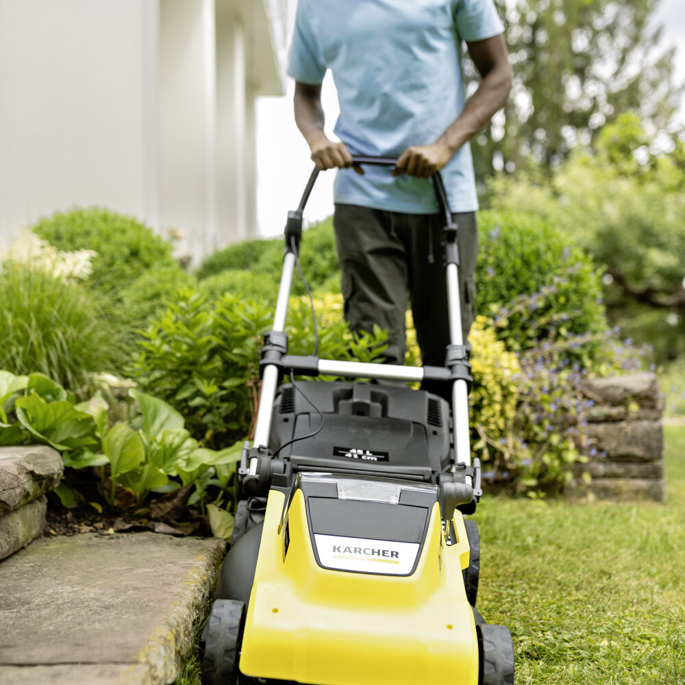 Se dvěma 18voltovými bateriemi a výkonným bezuhlíkovým 36voltovým motorem si sekačka LMO 5-18 Dual Battery poradí i s velkými trávníky o rozloze až 550 m². Lehká a obratná akumulátorová sekačka se bez námahy pohybuje po nerovném terénu a kolem překážek. Pracovní záběr je 41 cm a výšku sečení lze nastavit do jedné ze šesti úrovní v rozmezí od 25 do 70 mm. Při sečení inteligentní systém řízení motoru iPower automaticky přizpůsobuje rychlost otáček podmínkám trávníku. Podél okrajů trávníku narovnávají hřebeny stébla trávy a zajišťují, že žádné stéblo nevynecháte. Systém sečení 2 v 1 umožňuje rovnoměrné rozprostření posekané trávy po trávníku jako přírodního hnojiva při mulčování nebo sběr do velkého 45litrového sběrného koše - pro delší sečení bez přestávky. Vodicí rukojeť je teleskopická pro pohodlnou a ergonomickou pracovní polohu. Skládací rám zabírá při skladování velmi málo místa. K dispozici je velké, robustní držadlo pro přenášení do schodů a přes schody. Sekačka LMO 5-18 Dual Battery je kompatibilní s 18V bateriovou platformou Kärcher Battery Power.