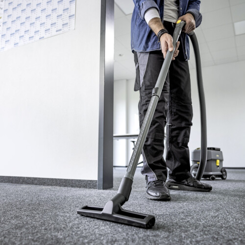Všestranný, robustní a udržitelný: náš bateriový vysavač na suché vysávání T 10/1 Bp Adv je vyroben ze 45 procent z recyklovaného materiálu (všechny plastové díly kromě příslušenství), a proto šetří zdroje. Zaujme vynikajícím sacím výkonem, rozsáhlou nabídkou příslušenství a atraktivním poměrem ceny a výkonu. Jeho odolnost a robustnost je patrná i na podvozku, krytu, nárazníku a velkých kolech. Velmi výkonné 36 V baterie Kärcher Battery Power+ zaručují prvotřídní výsledky čištění. Protože provozní hlučnost T 10/1 Bp Adv je i přes vysoký sací výkon pouze 57 dB(A), lze jej kdykoli použít v oblastech citlivých na hluk, jako jsou hotely nebo nemocnice. Kompaktní vysavač je odolný proti převrácení, snadno ovladatelný a lze jej ergonomicky přepravovat pomocí sklopné rukojeti. Štěrbinová hubice a hubice na čalounění jsou součástí dodávky a lze je vždy snadno uložit na T 10/1 Bp Adv. Součástí dodávky je bohaté příslušenství: sací hadice, antistatický koleno, lehká a teleskopická sací trubice z hliníku, přepínatelná podlahová hubice a parketová hubice. Baterii a rychlonabíječku je nutné objednat samostatně.