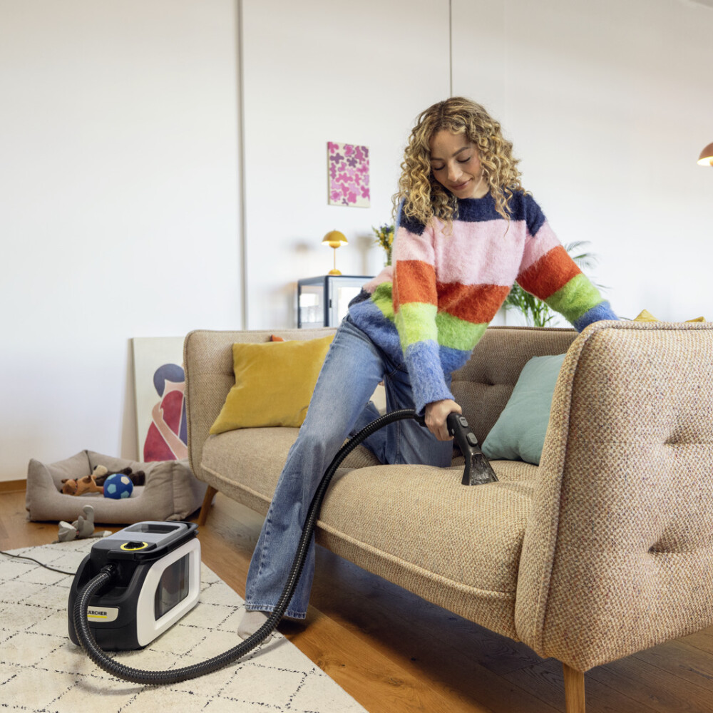 Pořiďte si výkonný a energeticky úsporný tepovač s hloubkovým čištěním textilních povrchů SE 3 Compact Home. Malý pomocník, který zajistí velký úklid – vhodný na čištění čalounění, koberců a běhounů. S příslušenstvím Shoe!Cleaner vám pomůže i v oblasti čištění bot. Hlavní výhody kromě výkonu? Kompaktní design, funkce systémového čištění, která udržuje čistotu samotného přístroje a všestranné využití na nábytek, kobercové podlahy i obuv. číst více