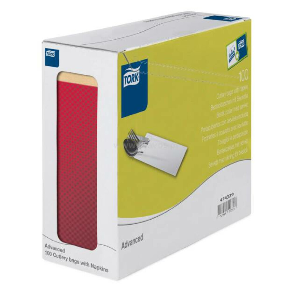 Tork bordeaux kapsička na příbory s krémovým ubrouskem
