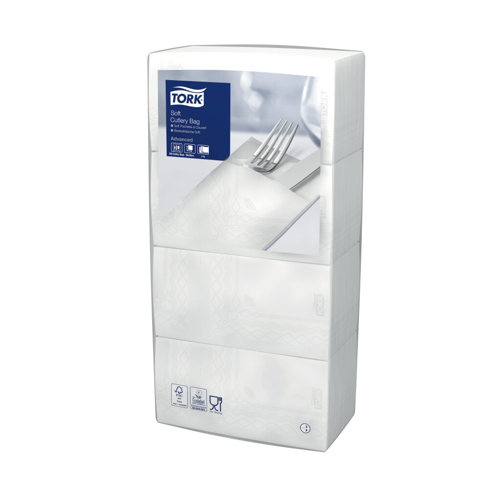 Tork jemné kapsičky na příbory s ubrouskem Bon Appetit pomohou při utváření dojmu hostů v restauracích s plnou obsluhou, kde je kladen důraz na kvalitu. Jsou pěkně skládané, takže s nimi rychle a elegantně prostřete. Zároveň je lze využít jako klasické ubrousky. Umocněte zážitek svých zákazníků vysoce savým třívrstvým ubrouskem.