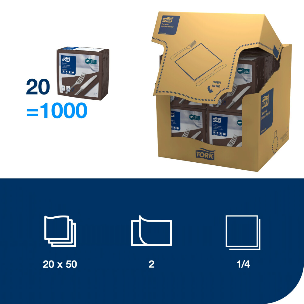 Tork Textured ubrousky jsou vynikající pro neformální příležitosti stolování. Díky mikro-ražbě působí silněji a měkčeji a navíc nabízí mimořádnou savost. Jsou k dispozici v 6 barvách, aby ladily s interiérem restaurace.
