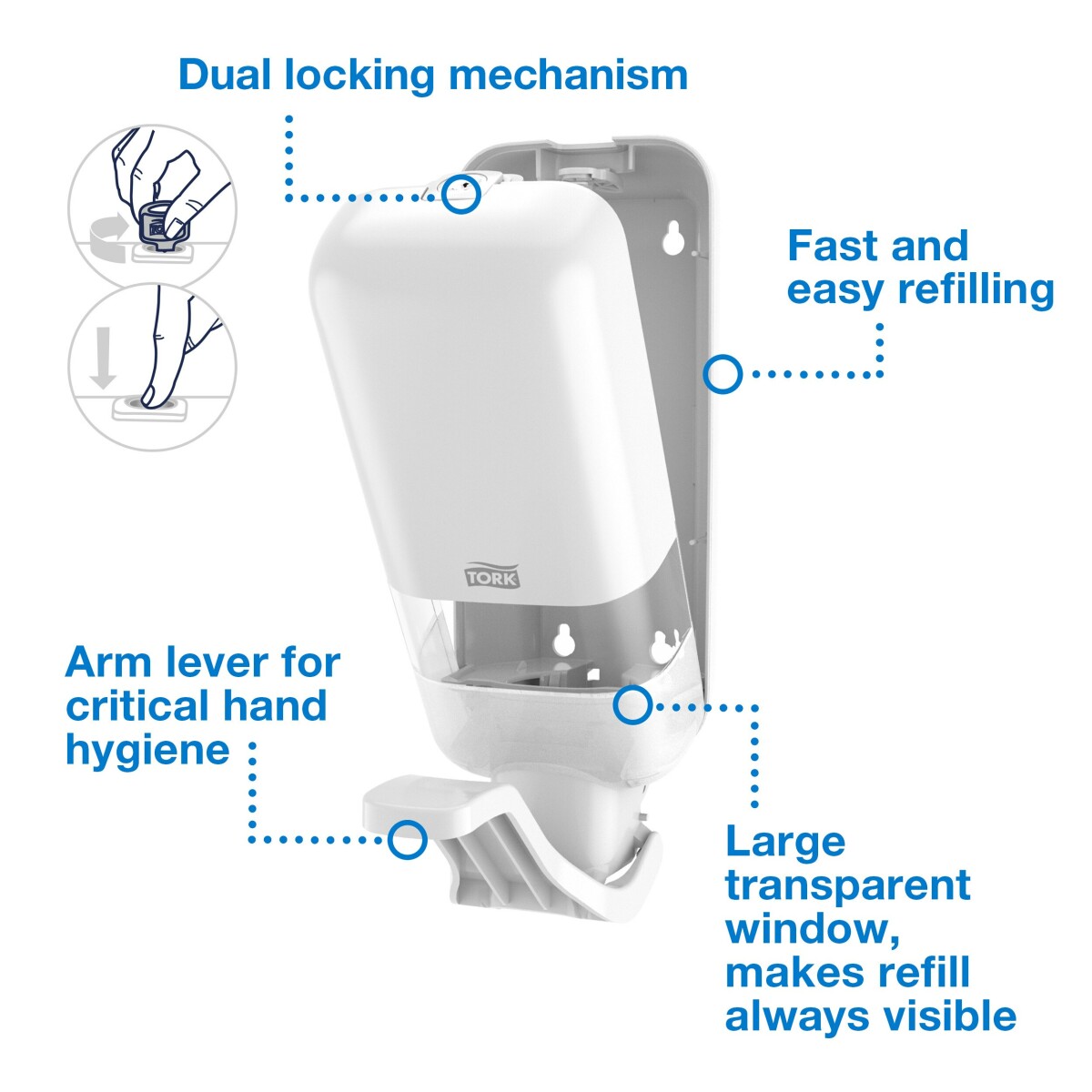 Tork zásobník na mýdla a dezinfekční prostředky s loketní pákou, bílý