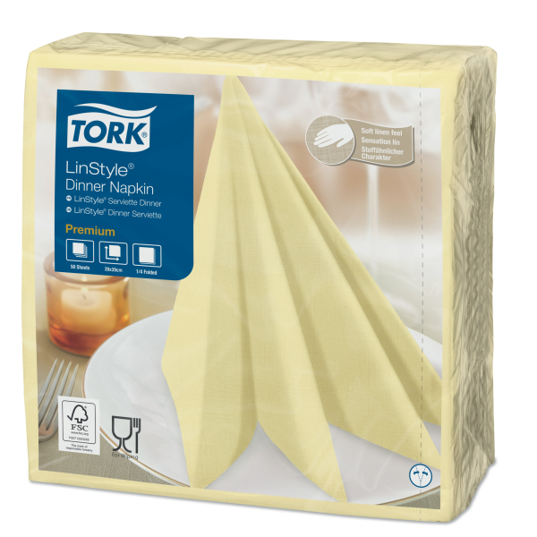Ubrousky Tork Linstyle® pomohou při utváření dojmu hostů v restauracích s plnou obsluhou, kde je kladen důraz na kvalitu. Vypadají a na omak působí jako textilní ubrousky. Jsou znatelně jemnější a pevnější než standardní papírové ubrousky a vyznačují se vynikající savostí. Nabídněte svým hostům eleganci v podobě textilního ubrousku v celé řadě moderních a klasických barev.