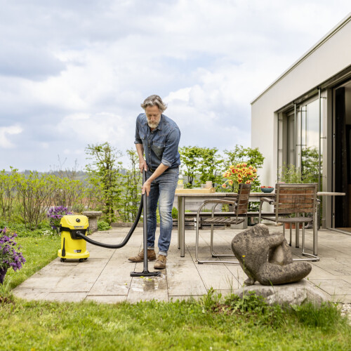 Vysávání, které nezná hranice: bateriový vysavač na mokré a suché vysávání WD 3-18, který je součástí 18 V bateriové platformy Kärcher Battery Power a nabízí maximální flexibilitu, kompaktní design a svobodu pohybu. Přístroj dokonale kombinuje 2 metry dlouhou sací hadici a klipsovou podlahovou hubici a dokáže během okamžiku odstranit mokré, jemné i hrubé nečistoty. Zařízení je dále vybaveno robustní a nárazuvzdornou plastovou nádobou o objemu 17 litrů, jednodílným kartušovým filtrem a také fleecovým filtračním sáčkem. Skladování sací hadice šetří místo; jednoduše jej zavěste na hlavu zařízení. Mezi další funkce patří praktická funkce fukaru pro oblasti, kde není možné vysávání, odkládací prostor na nářadí a drobnosti, otočný spínač pro snadné zapnutí a vypnutí přístroje, ergonomicky tvarované madlo pro přenášení a také "Pull & Push" uzamykací systém, který umožňuje snadné otevírání a zavírání nádoby. Parkovací poloha na nárazníku umožňuje rychlé a pohodlné uložení trubic a podlahové hubice při krátké přestávce při práci. Baterie a nabíječka jsou součást balení.