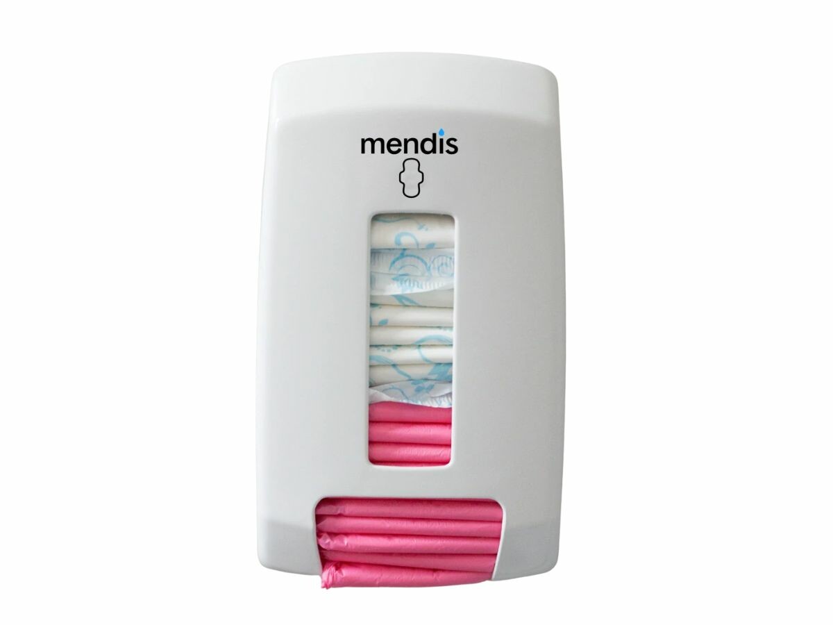 Zásobník na menstruační vložky Mendis plastový. Praktický a elegantní zásobník na dámské vložky značky Mendis zajišťuje maximální komfort a diskrétnost pro každou uživatelku. Je vyroben z odolného bílého plastu a díky kompaktním rozměrům se hodí i do menších prostor. číst více
